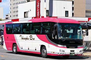 | 北海道拓殖バスの帯広〜旭川間「ノースライナー」。(2019年6月25日 旭川駅前) 2021年9月記 |