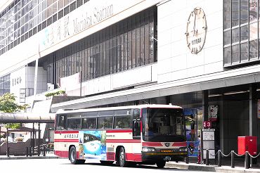 盛岡〜青森間「あすなろ」。新幹線は新青森で乗り換えになるのでバスも意外と便利。(2009年8月3日 盛岡駅西口) 2012年12月記 |