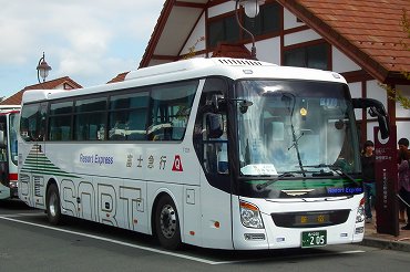 アルピコ交通の新宿〜上高地間「さわやか信州」の3列座席車。(2016年7月28日 上高地BT) 2016年7月記 |