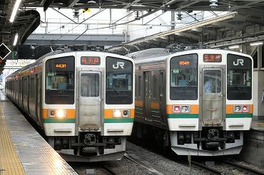 211系の万座・鹿沢口行きに乗って小野上温泉へ行きます(右)。左は両毛線の小山行き。(2025年10月16日 上越線高崎) 2025年11月記 |