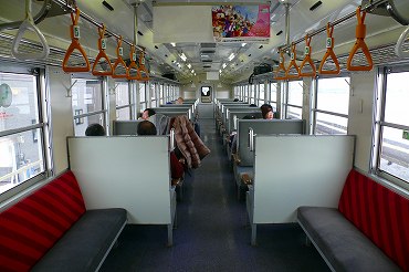 キハ40系車内。セミクロスシートですがボックス席中心。(2010年1月20日) 2012年12月記 |