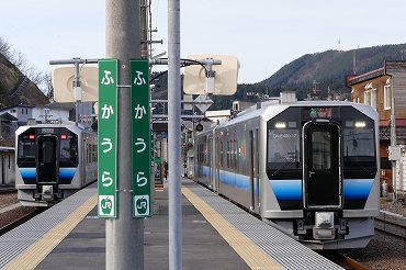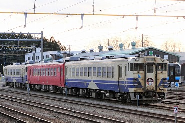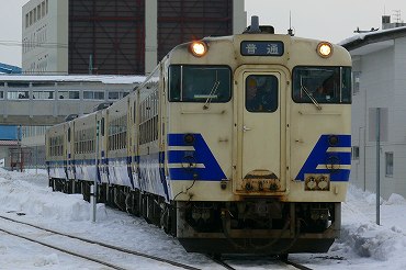 キハ40系。両運転台のキハ40ばかりの4連です。(2010年1月20日 五所川原) 2012年12月記 |
