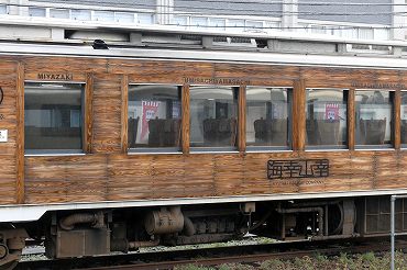 | キハ125系の宮崎〜南郷間「海幸山幸」は元高千穂鉄道のトロッコ車両。(2019年3月21日 南宮崎) 2026年3月記 |