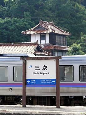 上下駅とは変わった駅名です。キハ120系の三次行きワンマンカーより。(2015年9月6日 上下) 2015年9月記 |