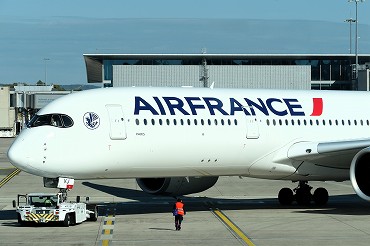 A350-900、F-HUVJが出発。ターミナル2Eの出国後のエリアより。(2025年9月17日 パリCDG) 2025年11月記 |