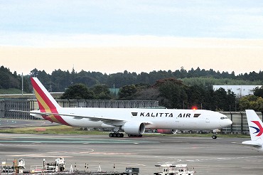 B777-300ER(SF)、N778CKがシンシナチから到着。この機体は元エミレーツ航空の旅客型。ターミナル2から窓越し。(2025年11月1日 成田NRT) 2025年4月記 |