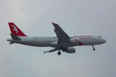 | エア・アラビアのA320、A6-ANLがシャールジャから滑走路02へアプローチ。(2013年3月13日 カトマンズKTM) 2016年9月記 |