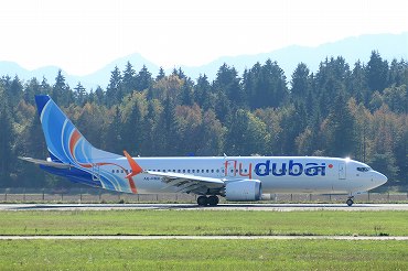 フライ・ドバイのB737-MAX8、A6-FMXがドバイから到着。(2022年10月7日 リュブリャナLJU) 2022年10月記 |