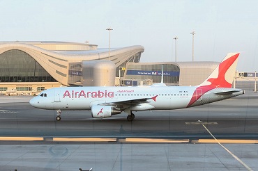 エア・アラビアのA320、A6-AUJ。この機体は元エア・アラビア・モロッコでスペインのブエリング航空を経ています。。出国後のエリアより。(2026年1月14日 アブダビAUH) 2026年1月記 |