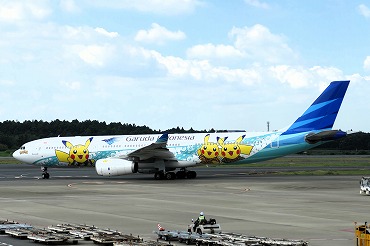 ガルーダ・インドネシア航空のA330-300、PK-GPGがデンパサールへ出発。展望ホールより。(2011年7月22日 関西KIX) 2016年5月記 |