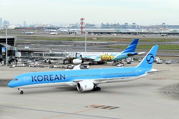 B787-9、HL8392がソウル金浦から到着。ターミナル3の展望デッキより。(2025年5月20日 羽田HND) 2025年11月記 |