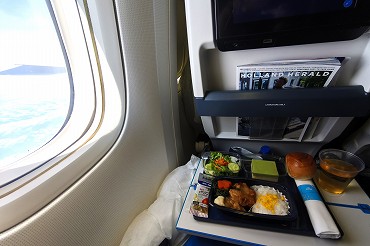 B777-200、PH-BQL機内。成田からアムステルダムへ1回目の機内食。(2025年9月3日) 2025年10月記 |