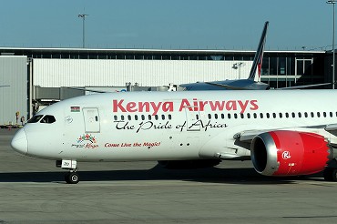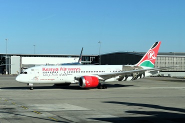 ケニア航空のB787-8、5Y-KZDがナイロビから滑走路19Rに到着。空港周辺の歩道橋より。(2017年3月13日 バンコクBKK) 2018年9月記 |