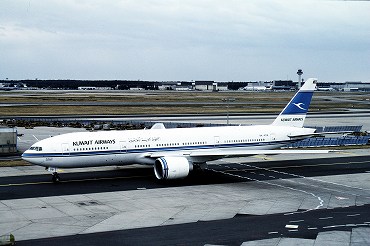 | クウェート航空のB777-200、9K-AOBがクウェートから到着。この機体は引退しました。ターミナル1の展望デッキより。(2000年7月9日 フランクフルトFRA) 2025年12月記 |