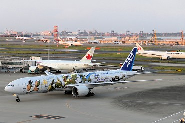 B777-300、JA754Aが福岡から到着。ターミナル1の展望デッキより。(2017年1月6日 羽田HND) 2017年1月記 |
