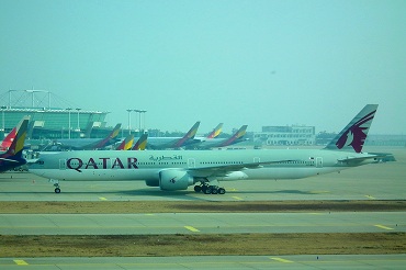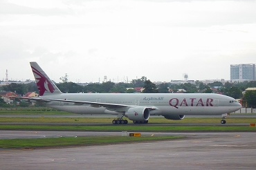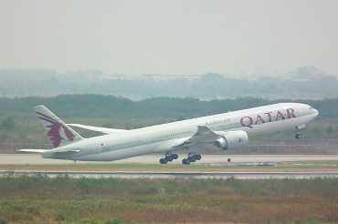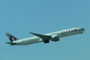 | B777-300ER、A7-BECがドーハへ出発。入国前のエリアより。(2019年1月7日 プノンペンPNH) 2019年1月記 |