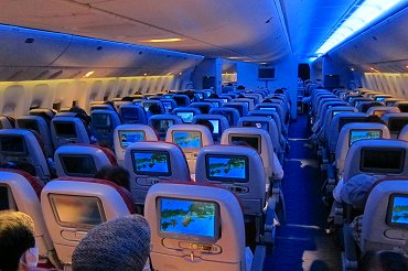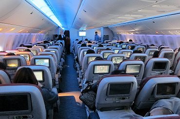 | B777-200LR、A7-BBB機内。成田からドーハに向かいます。(2013年11月5日) 2016年9月記 |