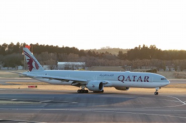 B777-300ER、A7-BEGがドーハから到着。ターミナル1の展望デッキより。(2022年2月27日 成田NRT) 2022年8月記 |
