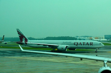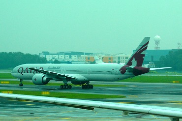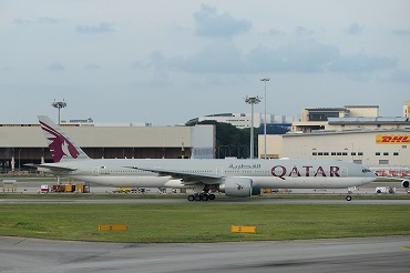 | B777-300ER、A7-BAAがドーハへ出発。出国後のエリアより。(2010年5月13日 シンガポールSIN) 2016年9月記 |