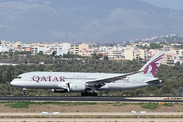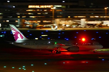 | B787-8、A7-BDCがドーハへ出発。国際線ターミナルの展望デッキより。(2016年6月3日 羽田HND) 2016年9月記 |