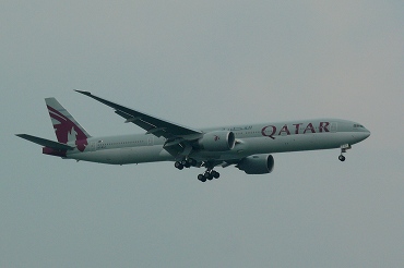 B777-300ER、A7-BAAがドーハから到着。チャンギビーチパークより。(2010年5月10日 シンガポールSIN) 2016年9月記 |