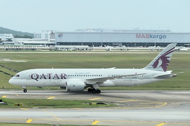 B787-8、A7-BCVがドーハから到着。展望エリアより窓越し。(2024年2月27日 クアラルンプールKUL) 2024年3月記 |