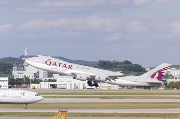 B747‐8F、A7-BGAが滑走路33Lを離陸。(2018年9月4日 仁川ICN) 2018年10月記 |