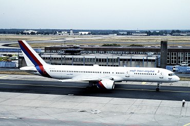 | ロイヤル・ネパール航空時代のB757-200、9N-ACBが出発。ターミナル1の展望デッキより。(2000年7月7日 フランクフルトFRA) 2025年12月記 |