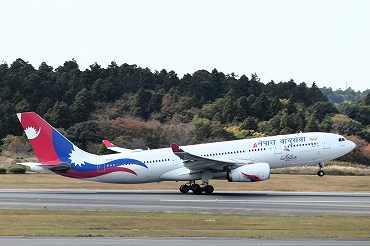 | ネパール航空のA330-200、9N-ALYがカトマンズへ離陸。ターミナル1の展望デッキより。(2022年11月9日 成田NRT) 2025年12月記 |
