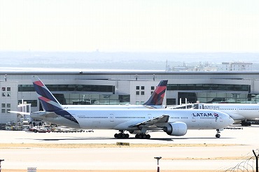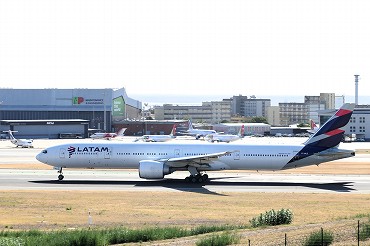 | LATAMブラジルのB777-300ER、PT‐MUEが滑走路02をサンパウロへ離陸滑走。この機体は元TAM航空。(2025年9月8日 リスボンLIS) 2025年11月記 |
