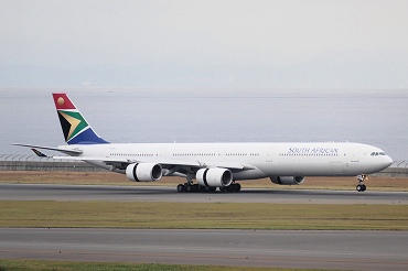 | A340-600、ZS-SNDが成田から着陸。ラグビーワールドカップ東京大会出場選手のチャーター便でした。展望デッキより。(2019年10月17日 中部NGO) 2026年2月記 |