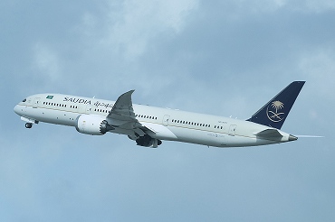 | サウディアのB787-9、HZ-AR11がデンパサールへ離陸。ターミナル2の出国後のエリアより。(2024年2月16日 シンガポールSIN) 2025年12月記 |
