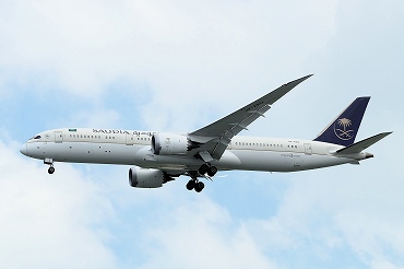 サウディアのB787-9、HZ-AR12がジェッダからアプローチ。チャンギビジネスパークより。(2024年2月17日 シンガポールSIN) 2025年12月記 |