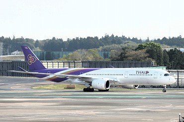 A350-900、HS-THCがバンコクから到着。ターミナル2北側の展望デッキより。(2025年4月17日 成田NRT) 2025年11月記 |