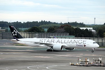 | A350-900、HS-THUがバンコクから到着。ターミナル2北側の展望デッキより。(2025年11月2日 成田NRT) 2025年11月記 |