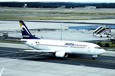 SATAインターナショナルのB737‐300、CS-TGRが出発。元トレードウインズでしたが、貨物機に改造されてコンゴへ売却されました。ターミナル1の展望デッキより。(2000年7月7日 フランクフルトFRA) 2024年6月記 |