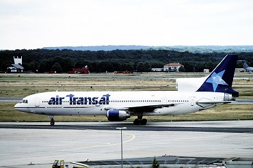 | エア・トランザットのロッキードL-1011トライスター、C‐FTNAが到着。この機体は元イースタン航空でエア・カナダを経ていましたが引退。ターミナル1の展望デッキより。(2000年7月8日 フランクフルトFRA) 2025年12月記 |
