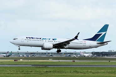 | B737-800、C-FWVJ。荷物検査後のエリアより。(2019年7月23日 エドモントンYEG) 2019年8月記 |