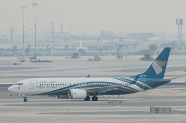 | オマーン・エアのB737‐MAX8、A4O-MLがマスカットから到着。ターミナル横より。(2026年1月10日 ドーハDOH) 2026年1月記 |