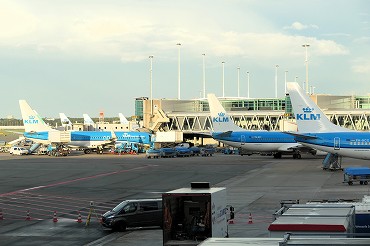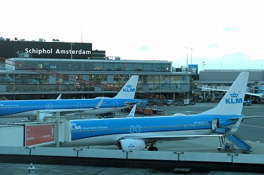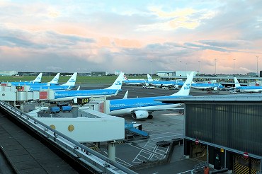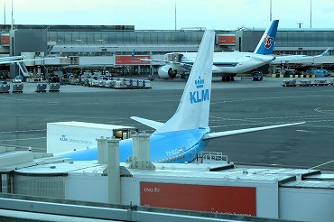 KLMオランダ航空の機体が並んでいます。展望デッキより。(2012年6月7日) 2017年2月記 |