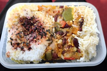 | シャルルドゴール空港ターミナル2Fの荷物検査後のエリアにて。乗り継ぎ時間が長いのでリスボンの宿でお弁当を作っておきました。(2025年9月17日) 2025年10月記 |