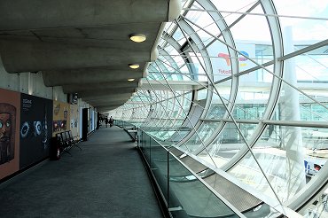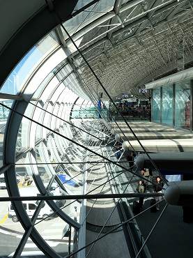 シャルルドゴール空港ターミナル1に到着。ドーナツ状の建物の中に動く歩道が張り巡らされた宇宙船的なイメージ。(2002年9月19日) 2021年12月記 |