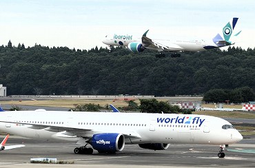 | この日はスペインのチャーター便が2機、続けて着陸しました。北側の展望デッキより。(2025年11月2日) 2026年3月記 |