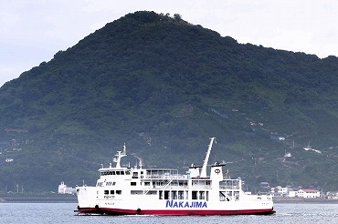 | 松山〜中島間「ななしま」。背後は興居島。(2020年7月27日 観光港) 2026年2月記 |