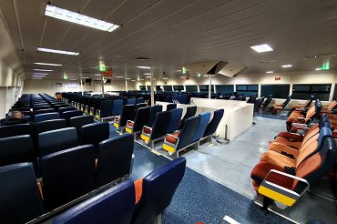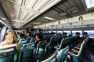 「イビス・プレト」は155t、2025年竣工の充電式電気船。「ギル・ビセンテ」に乗ってバレイロからテレイドパンへ向かう船内より。(2025年9月16日) 2025年10月記 |