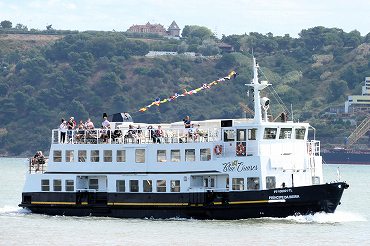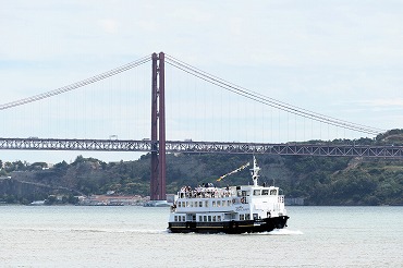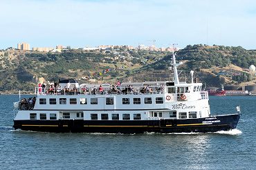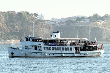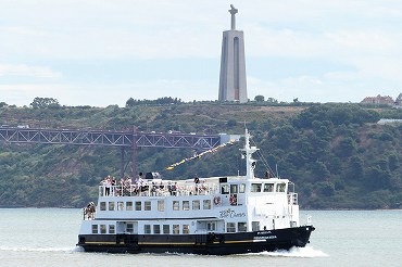 | テージョ川の遊覧船「プリンシペ・ダ・ベイラ」313トン、1981年竣工。発見のモニュメントより。(2025年9月5日) 2025年10月記 |