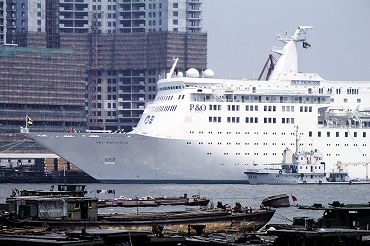 「ロイヤル・プリンセス」3万277t、2001年竣工ですが、P&Oクルーズの「アドニア」になりました。大阪市営渡船より。(2009年3月12日 大阪) 2017年3月記 |