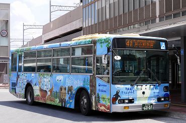旭川電気軌道のノンステップ車で運行の旭山動物園行き。(2016年7月4日 旭川駅) 2016年7月記 |
