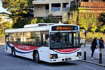 | 関越交通のノンステップ車で運行の伊香保榛名口行き。(2025年10月17日 伊香保石段口) 2025年11月記 |