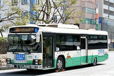 ノンステップ車。循環線専用デザインのようです。(2015年4月6日 JR奈良駅) 2019年9月記 |